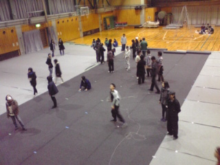 皆でリレー形式で体育館の入り口付近にスタンバイ。