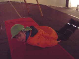 ↓ちゃっかりKゼミT君が院生作品の椅子に座っているダクト。