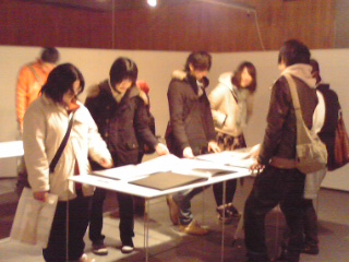 ポートフォリオをのせていたテーブルを運び出して、椅子を並べて、一生懸命配置を考えていたダクト。